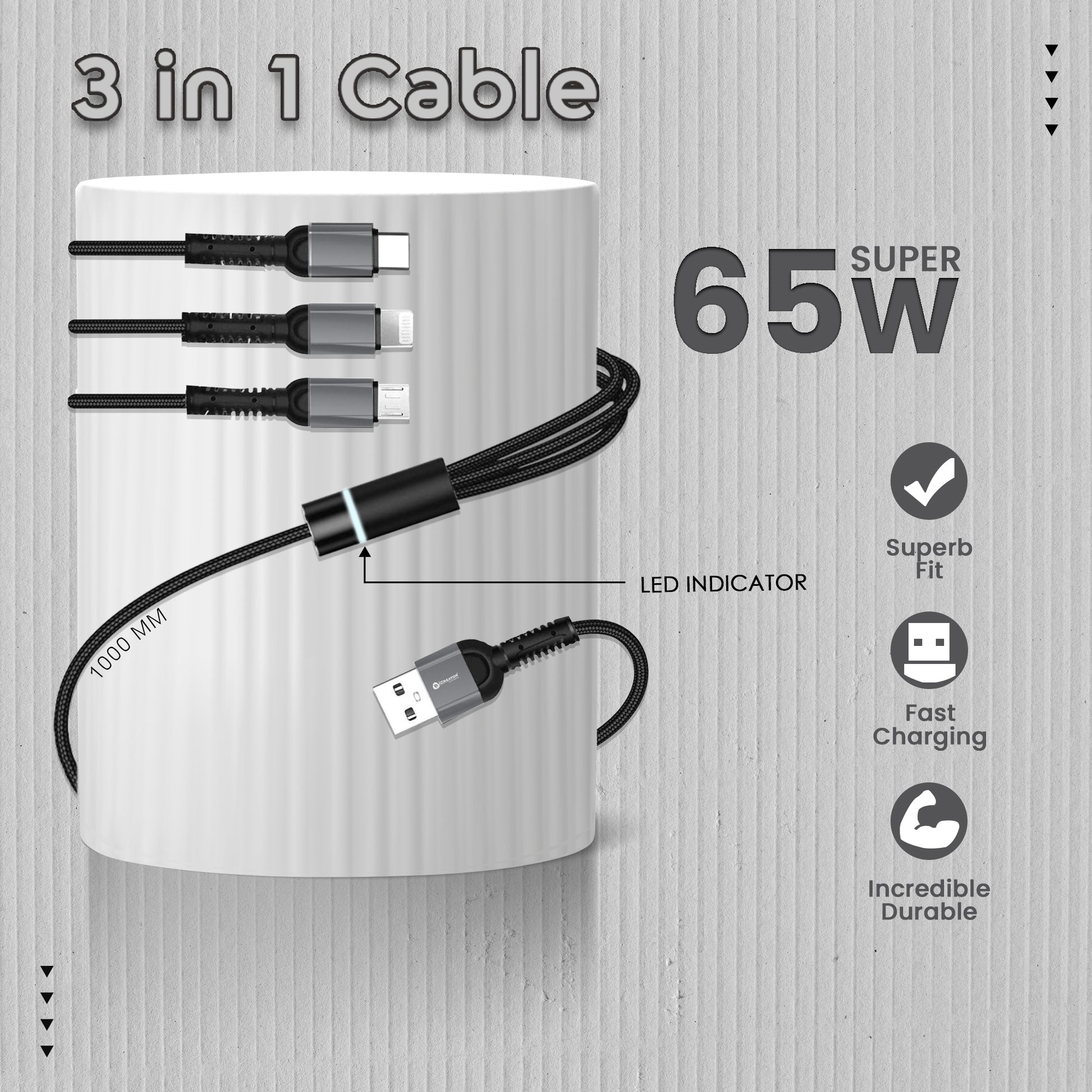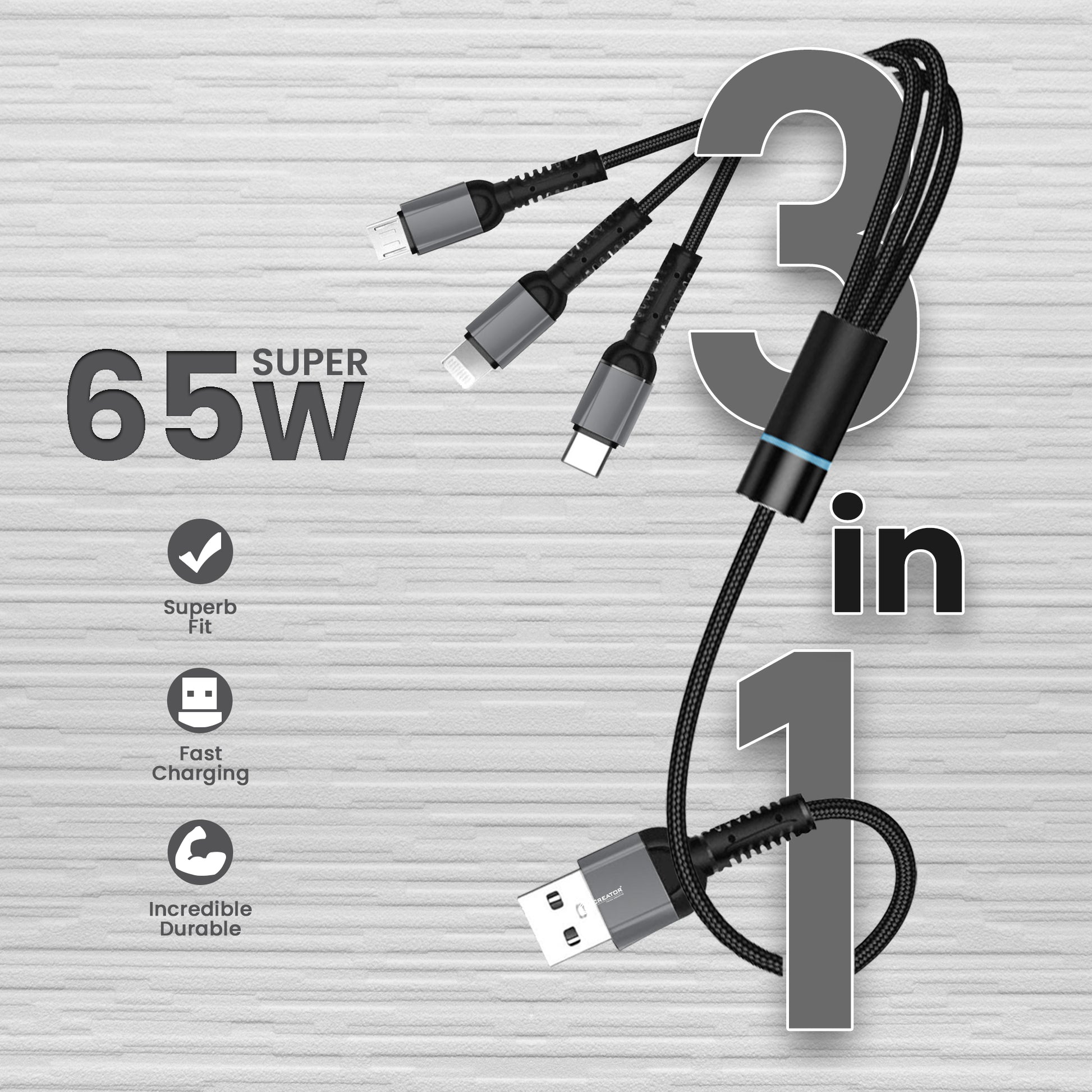 - 3-in-1 Design – Charge multiple devices at once with Micro USB, Type-C, and Lightning connectors.