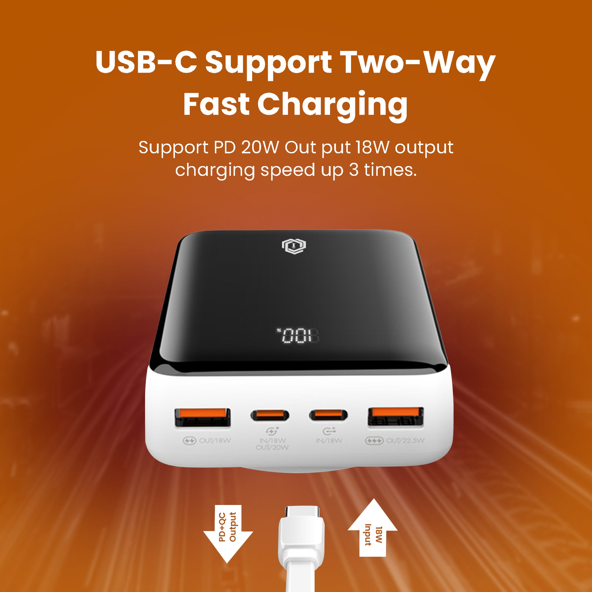 20000mAh High Capacity – Long-lasting power for smartphones, tablets, and accessories.